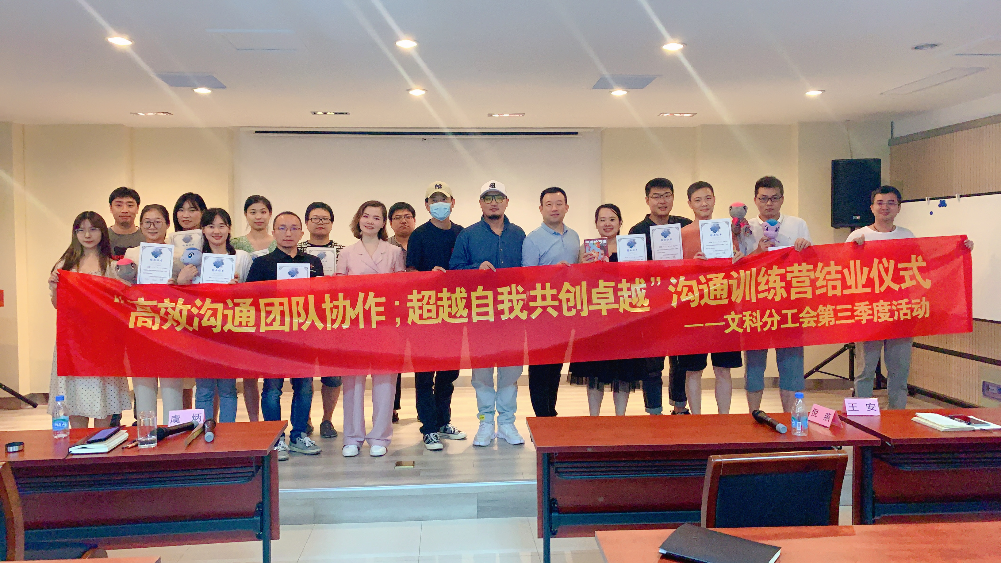 8月13日,常州恐龙园文化科技有限公司举行“高效沟通,团队协作;超越自我,共创卓越”沟通训练营结业仪式。恐龙园文旅集团副总裁虞炳,文科公司总经理倪燕,公司各部门参训学员及员工参会活动。